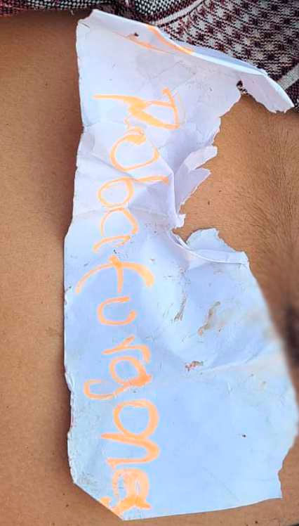 Por lo que dieron aviso a las autoridades correspondientes para las diligencias respectivas en el lugar agentes de la PNC Y MP localizaron 01 teléfono celular así mismo un papel donde se lee roba furgones.