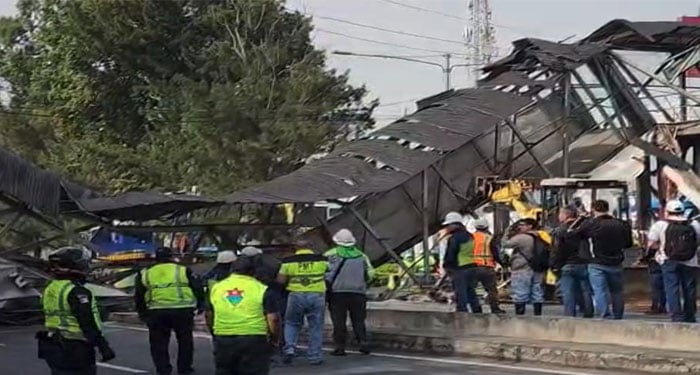 La pasarela colapsó parcialmente, aún se desconoce si habrá necesidad de retirar toda la estructura de ambos carriles.
