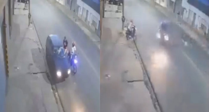 Conductor enfrenta a motoladrones y los arrolla durante intento de asalto.
