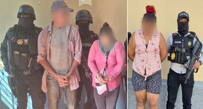 En El Jícaro, El Progreso, fueron capturados Irma Esmeralda Cruz Marroquín, de 30 años, y José Luis Moran Llamas, de 51. Además, en Guastatoya, también en El Progreso, fue detenida Soraida Cristabel Marroquín Cruz, de 30 años, por los delitos de plagio o secuestro y obstaculización a la acción penal.