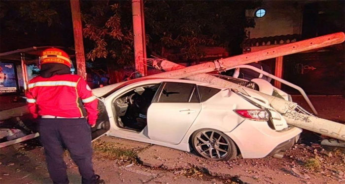 Tras el impacto, el poste cayó encima del vehículo ocasionando heridas al conductor.