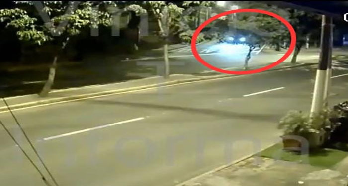 Las imágenes de una cámara del sector muestran claramente lo ocurrido. El conductor se pasa el alto y pierde el control, terminando estrellado contra un árbol que está en un arriate que divide los carriles.