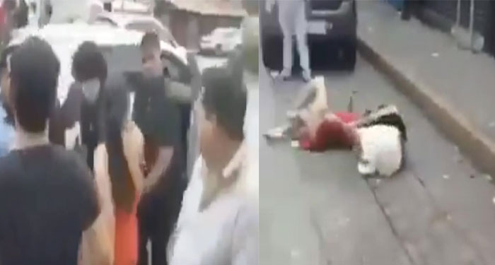 La pelea escala y más personas se involucran: Mientras las dos mujeres forcejean en el piso, la mujer de blanco logra propinar varios puñetazos en el rostro de la de rojo. En el ambiente se escucha a alguien decir: «No te metas, no te metas», cuando otra asistente intenta intervenir.