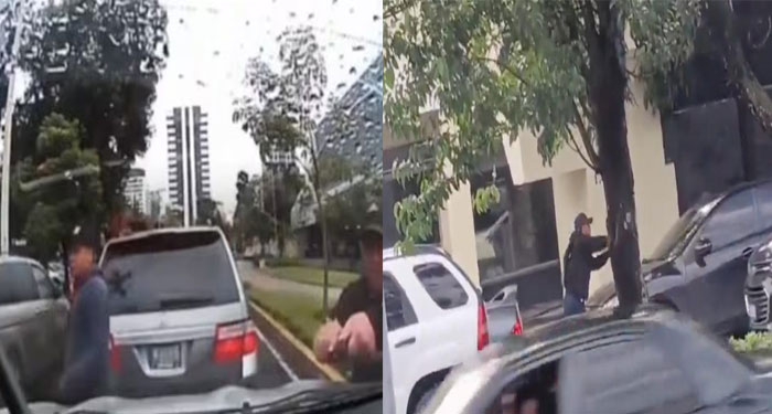 Uno de los sujetos sacó un arma para amenazar al conductor que estaba detenido en el tráfico.