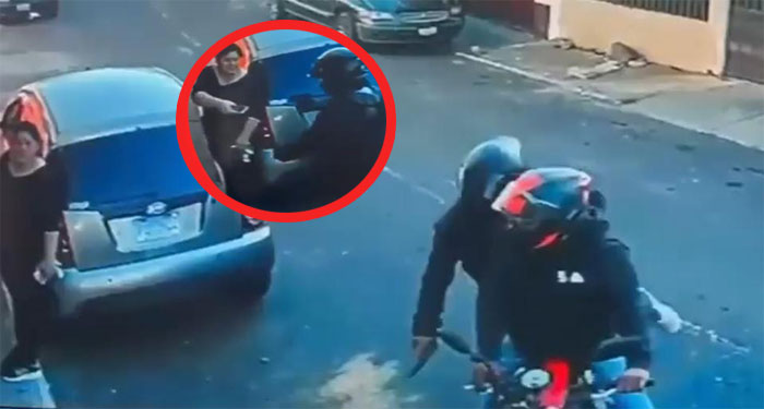 Impactante video muestra a motoladrones armados asaltando a mujer en plena calle de Mixco.
