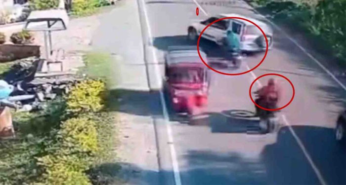 En Tiquisate, Escuintla, dos motoristas impactaron contra una camioneta, cuando esta realizó un cruce. El incidente quedó captado por una cámara de videovigilancia de la municipalidad, y las imágenes se compartieron a través de redes sociales por la Policía Municipal de Tiquisate.