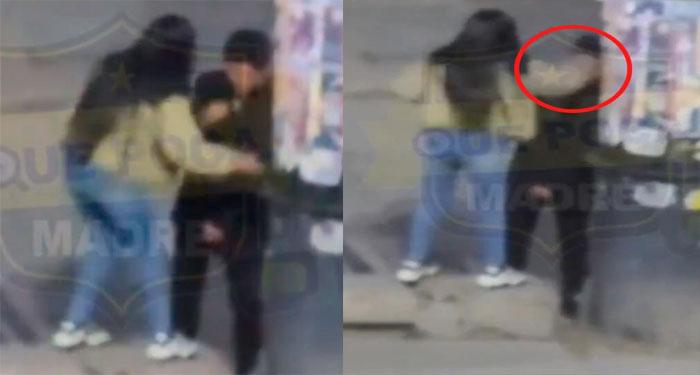 En redes sociales se hizo viral el video de una cámara de vigilancia que muestra a una mujer que golpeó brutalmente a su novio tras sostener una discusión al salir de un bar en Pachuca, Hidalgo (México).