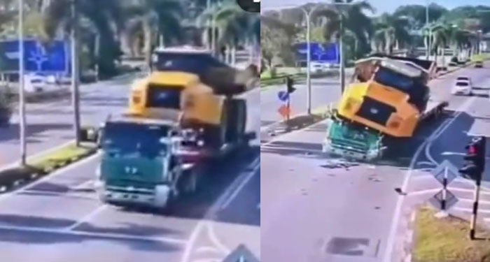 En una carretera de Malasia se registró un accidente mortal, luego que un camión que era transportado por un remolque cayó sobre la cabina de este. El accidente se produjo luego que el remolque tuviera un frenado repentino. Accidente captado en video: En redes sociales se difundió un video del momento del accidente.