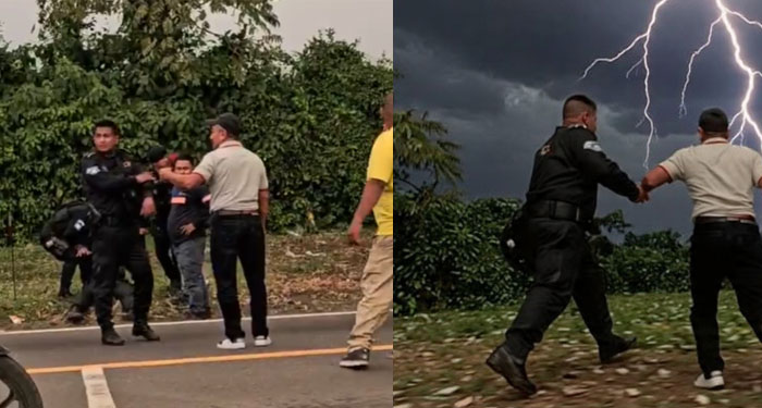 Les cae un rayo a dos agentes de la PNC en Siquinalá, Escuintla mientras realizaban labores de patrullaje en puesto de control ubicado en el sector. pic.twitter.com/6fTSsRc21u