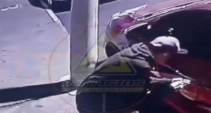 En las imágenes, captadas por una cámara de seguridad, se observa al hombre caminar por la banqueta junto a la camioneta, alejarse unos metros y regresar para vigilar el área. Minutos después, con un objeto punzocortante en mano, logra abrir la puerta del piloto en cuestión de 15 segundos. El sujeto ingresa al vehículo, sustrae objetos de valor y sale por la puerta del copiloto, huyendo tranquilamente del lugar.
